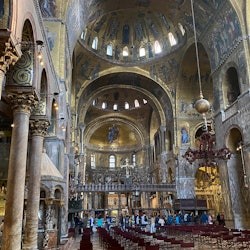 La basílica sirve como Catedral Patriarcal de Venecia y como testimonio del poder histórico y la destreza artística de la ciudad. Su interior está adornado con brillantes mosaicos, intrincados trabajos de mármol y preciosos artefactos, que reflejan el rico patrimonio cultural y los logros artísticos de Venecia. Hoy en día, la Basílica de San Marcos sigue dando la bienvenida a visitantes de todo el mundo, invitándoles a maravillarse con su belleza, explorar su historia y experimentar su significado espiritual.